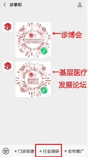 参会人员需要在展前关注公众号“诊掌柜” (二维码图),点击公众号下拉菜单“行业调研”→“诊博会预登记”or“论坛注册”分别获取展会或论坛二维码,扫描二维码进入预登记界面,提交个人信息进行报名。