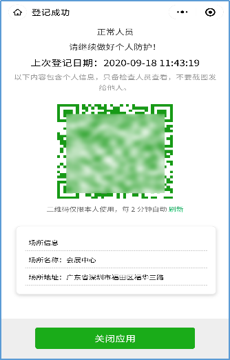 l 完成后点击下面绿色的登记即可出现一个二维码,显示绿色为正常即可。